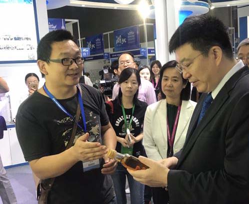土老憨展位前,,工业和信息化部部长苗圩强调:中小企业是推动经济和社会发展的重要力量,也是最具发展活力和创造力的企业群体。我们要支持一批像土老憨这样的企业融入全球价值链,参与全球竞争,推动中外各国企业实现包容与可持续发展。